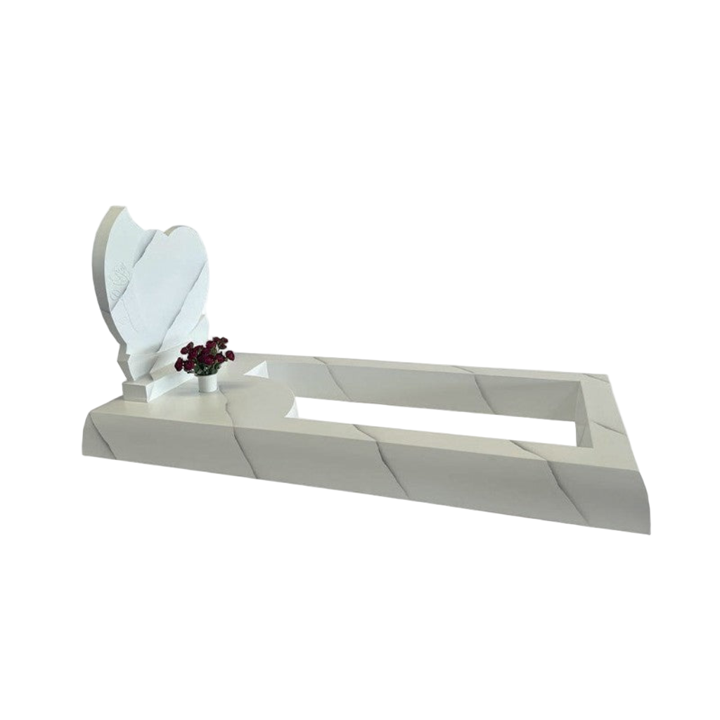 Pierre tombale en résine - Stèle cœur - Blanc / Marbre