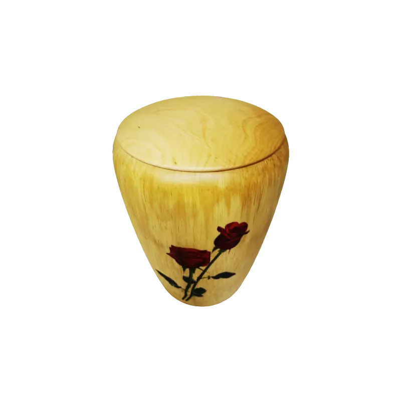 Cette urne funéraire en bois laqué, fabriquée en France (Rhône-Alpes Auvergne), se distingue par ses couleurs rouille et ivoire, à la fois...
