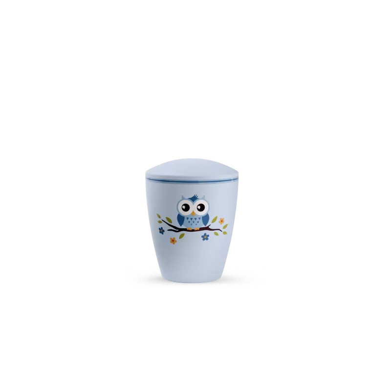 Cette urne funéraire biodégradable pour enfant présente un décor tendre de hibou, symbole de sagesse et de paix. Disponible en bleu ou rose, elle permet de rendre hommage à un enfant avec douceur et respect.