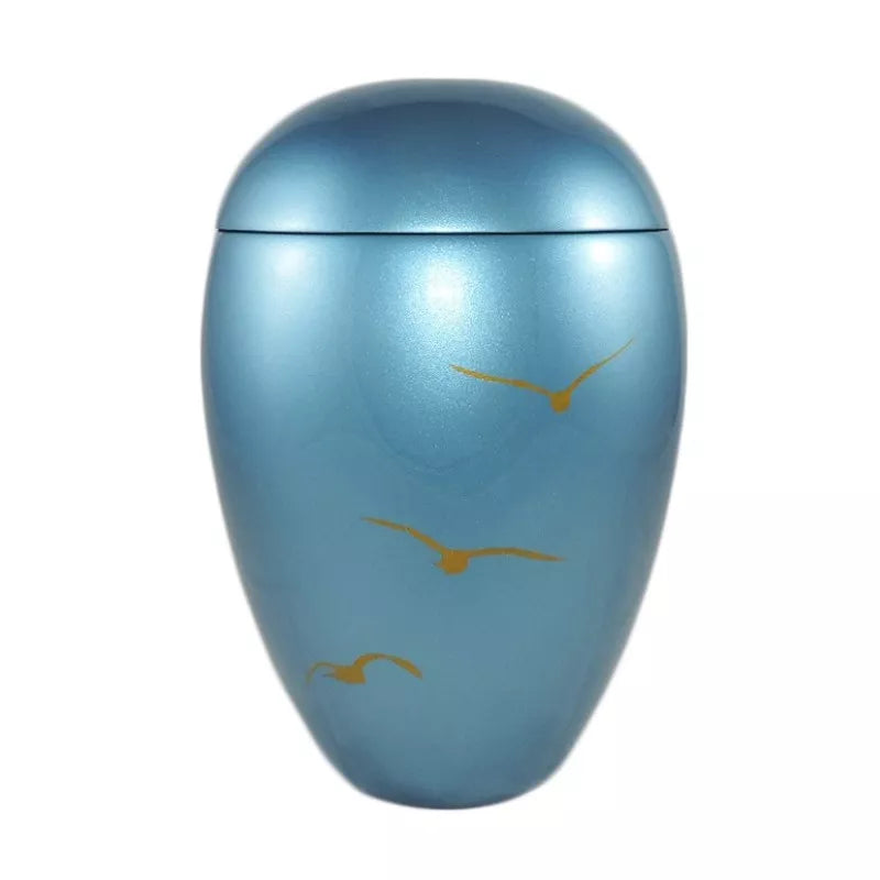 Urne funéraire en résine laquée avec motif d'oiseaux