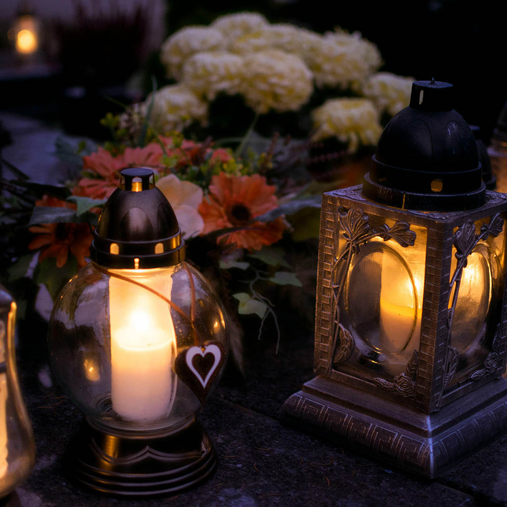 Bougie lanterne funéraire à piles – San Pio Honorez la mémoire de vos proches avec cette bougie funéraire à piles, décorée de...
