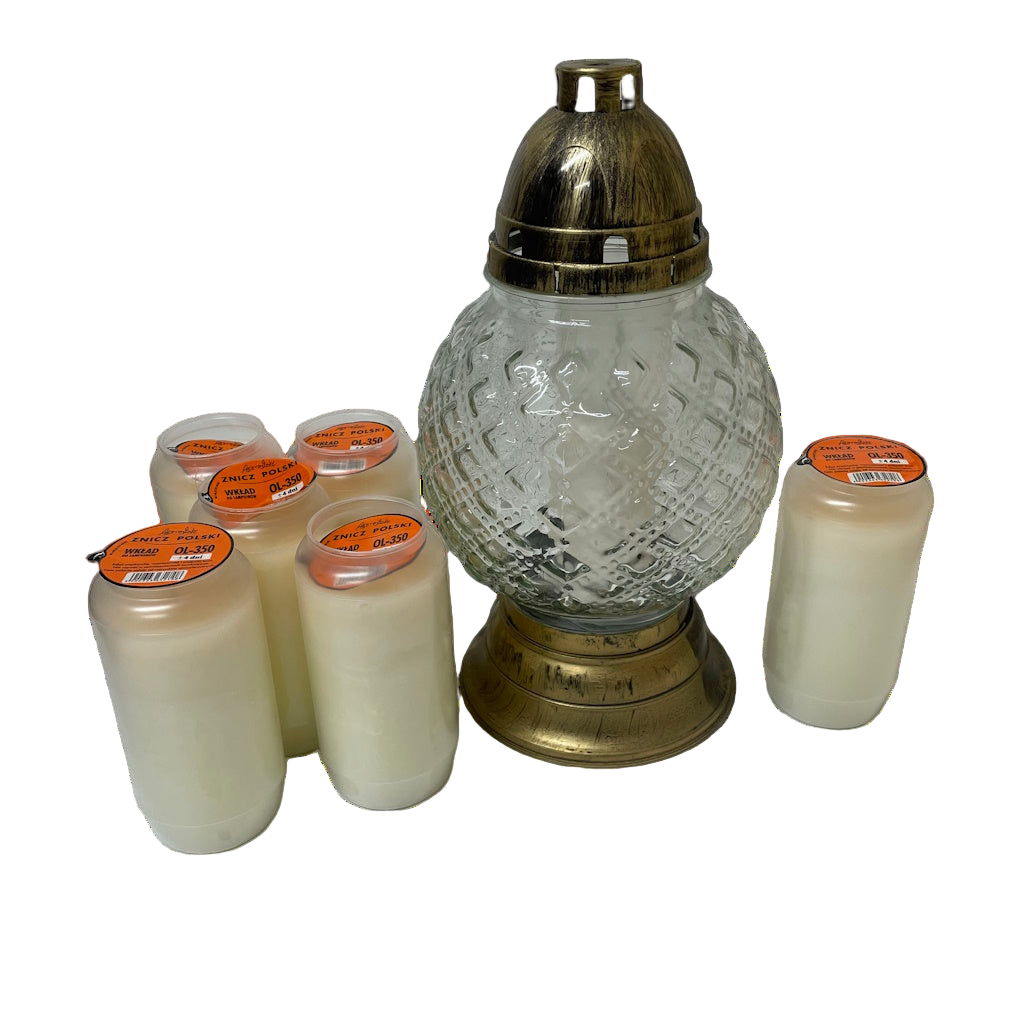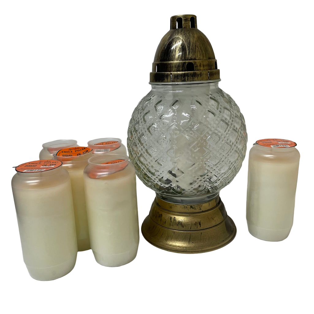Lanterne funéraire ronde élégance 31 cm + 6 bougies