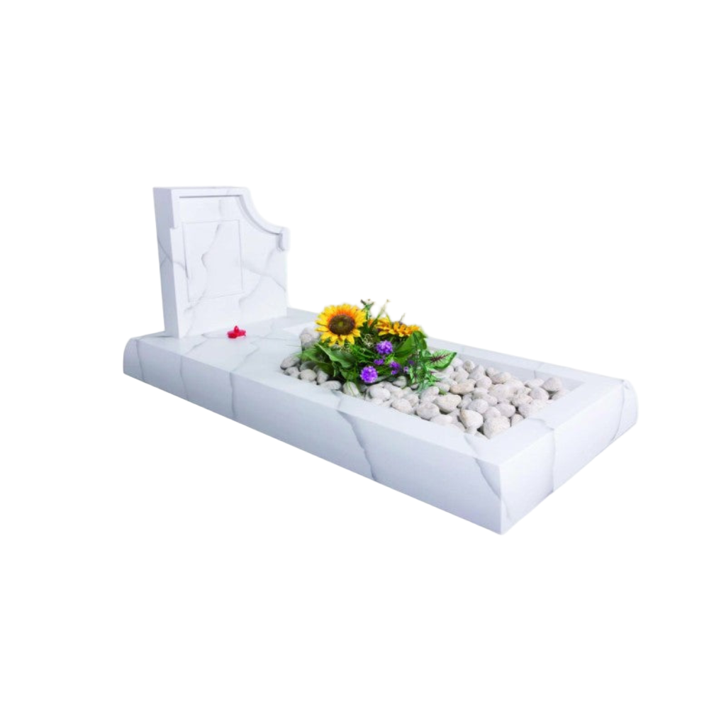 Fabriquée en résine moulée, elle constitue une alternative pratique et esthétique aux pierres tombales traditionnelles en granit ou en marbre.