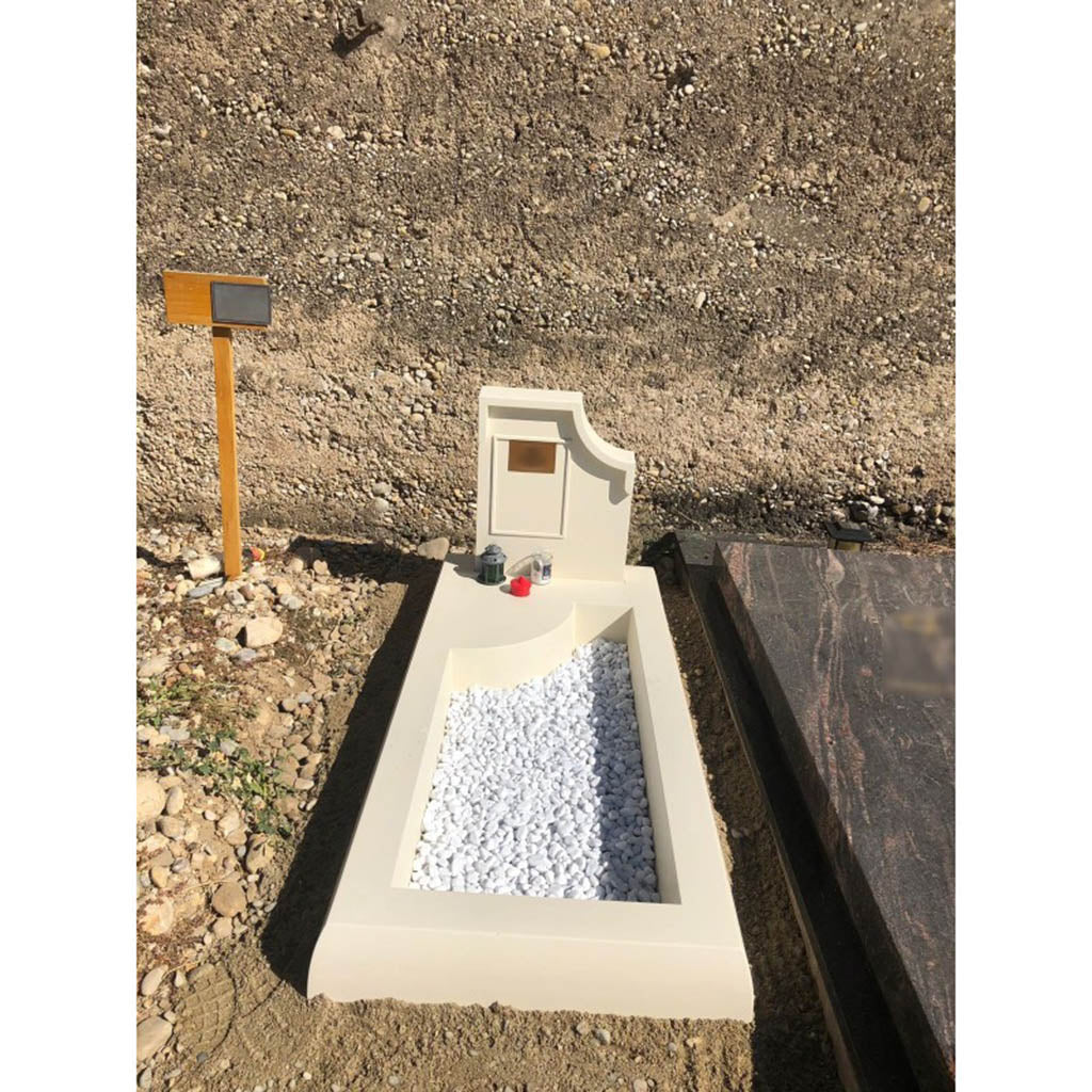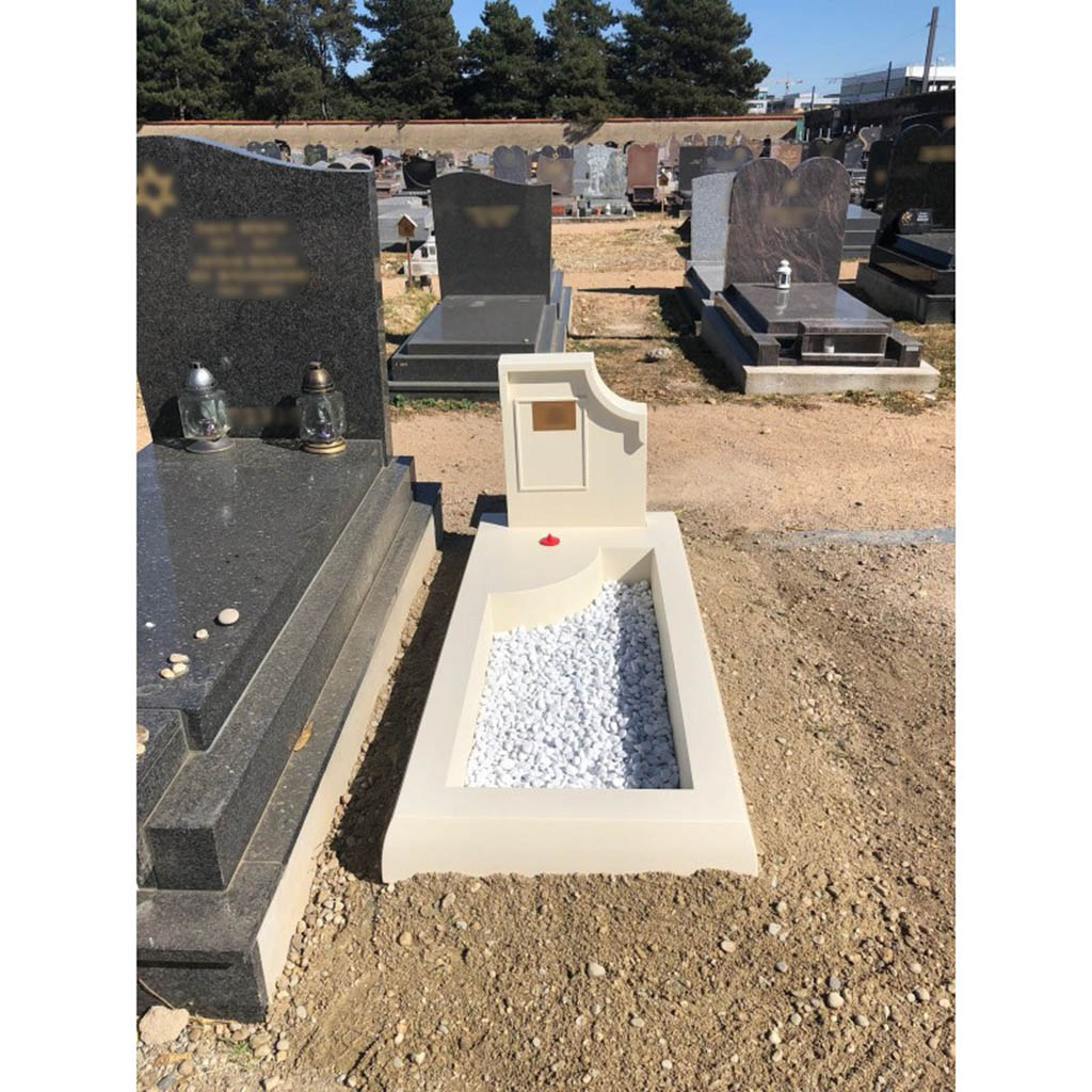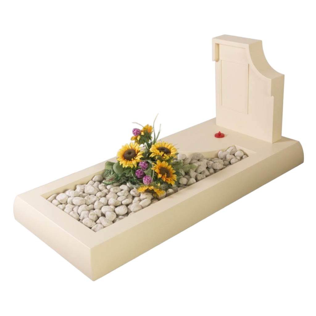 Fabriquée en résine moulée, elle constitue une alternative pratique et esthétique aux pierres tombales traditionnelles en granit ou en marbre.